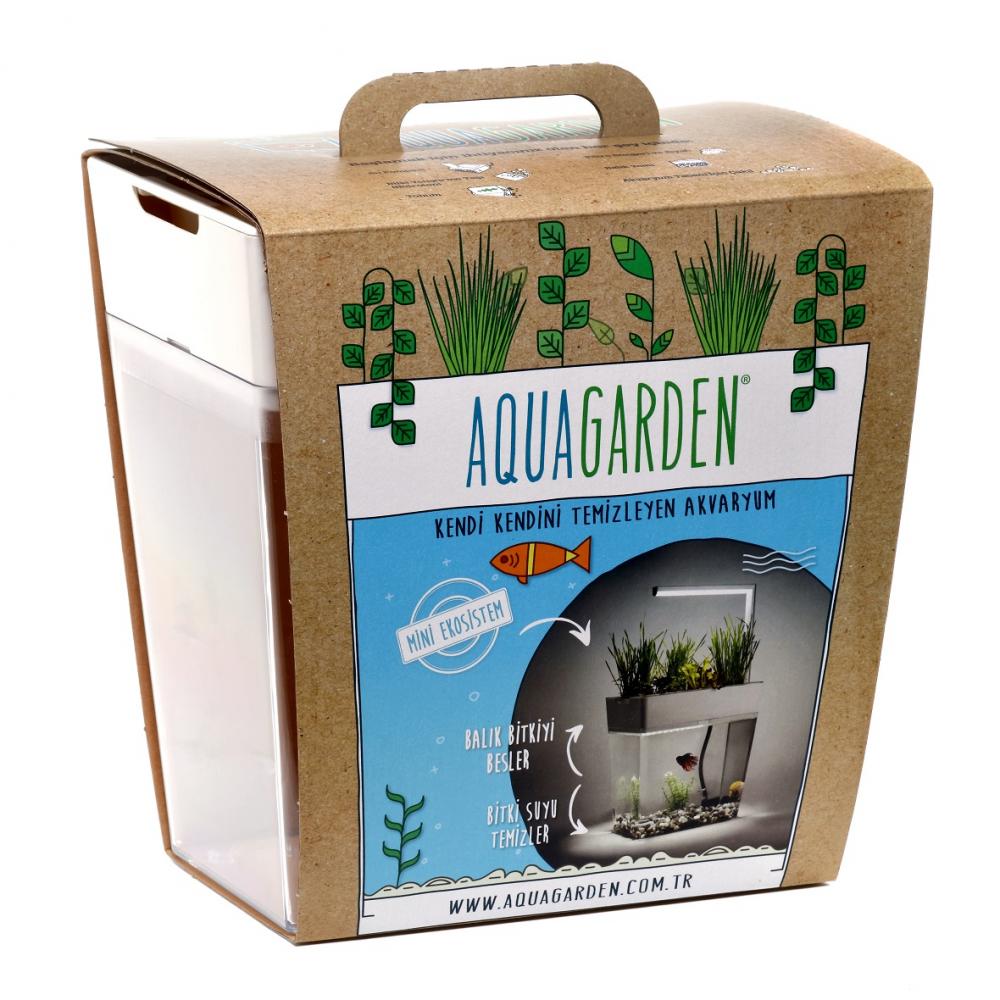 AquaGarden iç mimar Murat Oral’la, mühendis Mesut Kılıç’ın ama daha önemlisi, iki babanın ortak projesi. Projenin ilhamı; Amerika’daki topraksız tarımla aqua-kültürü birleştiren Aquaponics sera sistemlerinden geliyor. Bu sistemdeki bitkilere gübre yerine balık dışkısı verilmesi ve dışkının bitkiyi beslemesi, bitkininse balığın suyunu temizlemesi AquaGarden’ın da temel prensibi. Çocuklarına doğa sevgisi aşılamak isteyen bu doğa aşığı iki baba önce çocukları için ev yapımı bir Aquaponics akvaryum yapıyorlar. Çocukları için tasarladıkları bu akvaryum çok sevilince başkalarıyla da paylaşmak istiyorlar ve bunu bir projeye çeviriyorlar. Bir yıl süren hummalı bir çalışma sürecinden sonra “Patentli Ekolojik bir Nano Akvaryum“ olan AquaGarden doğuyor.