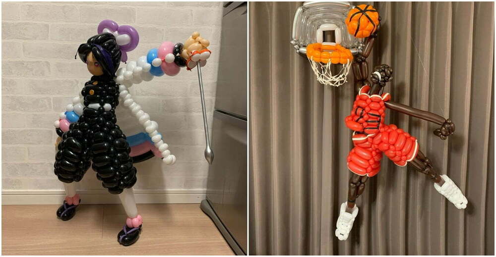 Renkli balonları bükme konusunda usta bu Japon sanatçının adı Ryo Kajiyama. Balon sanatçısı, popüler kültür ikonlarının balon heykellerinin yanı sıra gündelik eşyalara, hayvanlara ve bitkilere de eserlerinde yer veriyor.