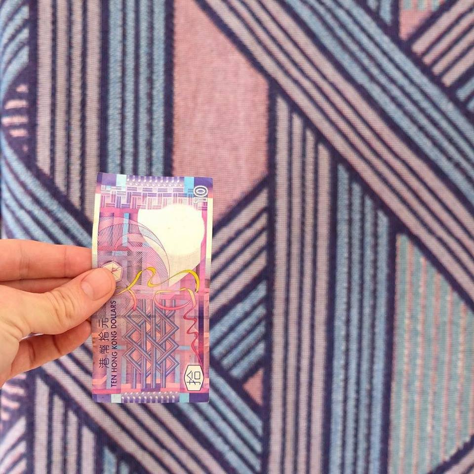 “Harbor blanket” adlı aşağıdaki battaniye, desenlerini 10 Hong Kong doları banknotundan alıyor.