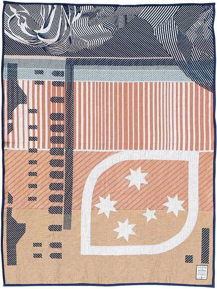 “Edith blanket adlı aşağıdaki tasarım desenlerinin kaynağını, Avustralya’nın 50 dolarlık banknotlarından alıyor. Banknottaki portre, Avustralyalı kadın hakları savunucusu avukat Edith Cowan’a ait ve battaniyede yalnızca Cowen’ın omzu ve saçları görülüyor.