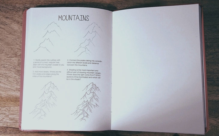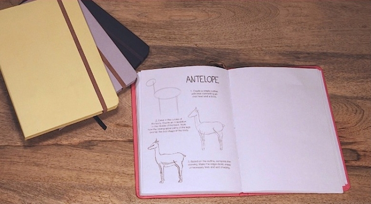 Defter, bir eskizin son halini almadan önceki taslak aşamalarını içeriyor. Böylece çizim yapmayı bilmeyen birisinin için bile bu yaratıcı dünyaya adım atması kolaylaşıyor. Dağ, bina gibi doğal yapılardan antilop, bulldog gibi hayvanlara kadar pek çok farklı figürün çizim inceliklerine sahip.