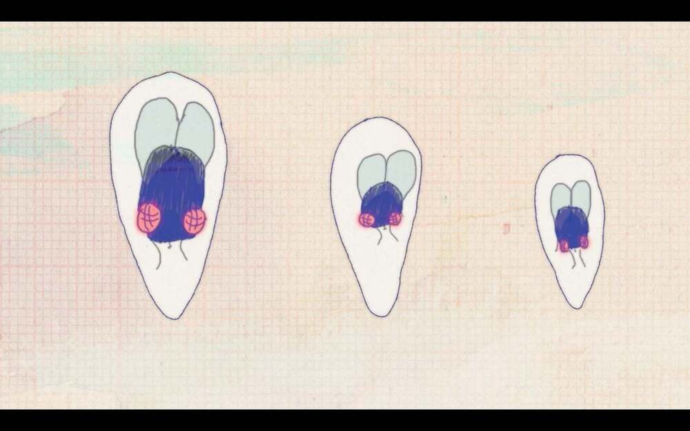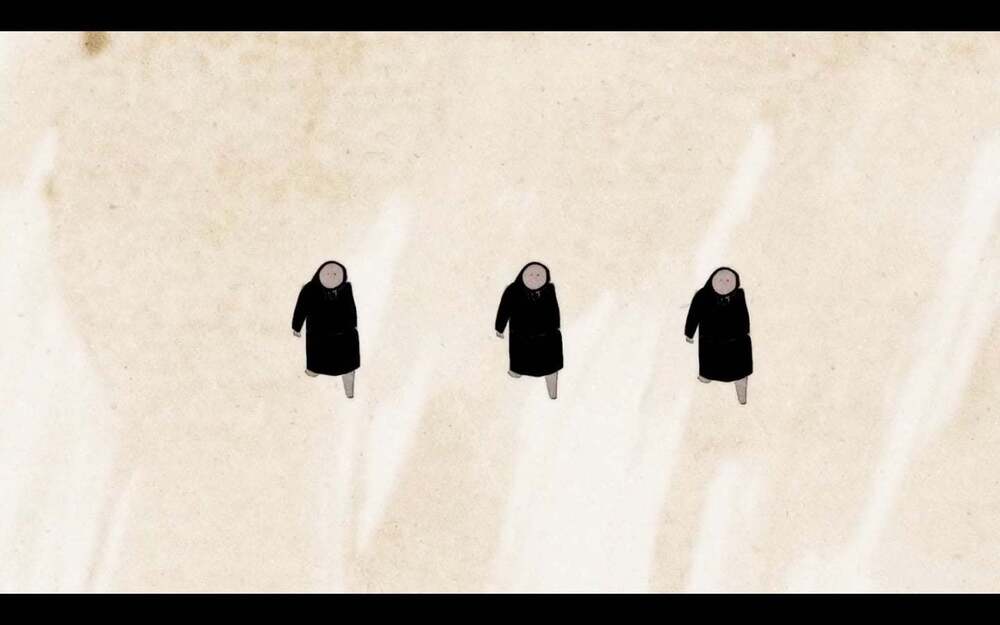 Yönetmenlik, yazarlık, animasyon, ses, prodüksiyon yani hemen hemen her şeyi Maria Alvares ve Elisa Morais tarafından yapılan “Three Fitted Flies” kavurucu bir yaz gününde köyde yaşanan bir olayı anlatıyor. Yas tutan baskıcı komşular, suçluluk duygusunun getirdiği iç sıkıntıları derken köydeki yaşlı bir teyzemiz de ritüel düzenleyerek ölmüş kocasını geri getirmeye çabalıyor. Evinde üç farklı boydaki midyeye bağladığı karasinekler ve onlara vurarak ritm tutmasıyla kocası ara ara beliriyor. Kocasını hayata döndürüp döndüremediğini söylemeyelim süprizi kaçmasın.