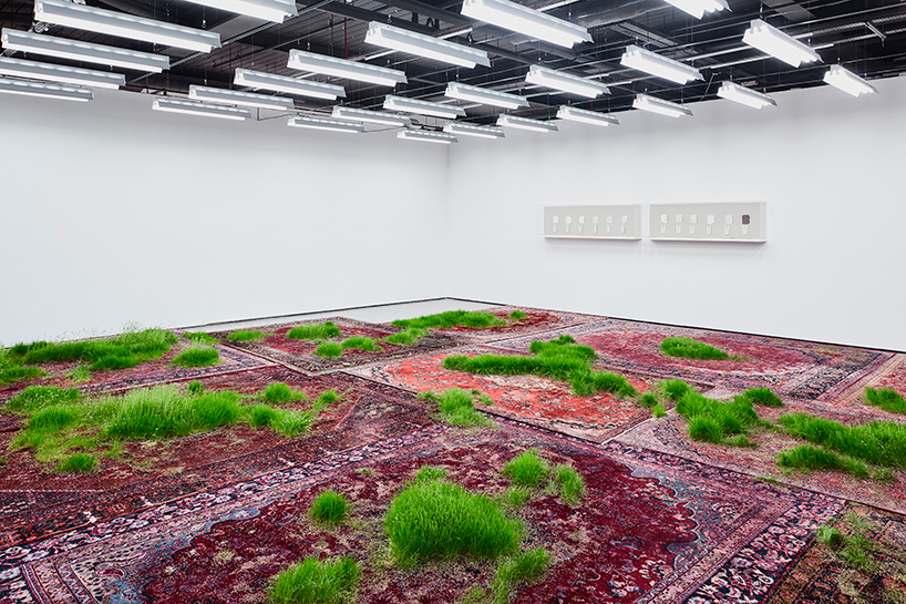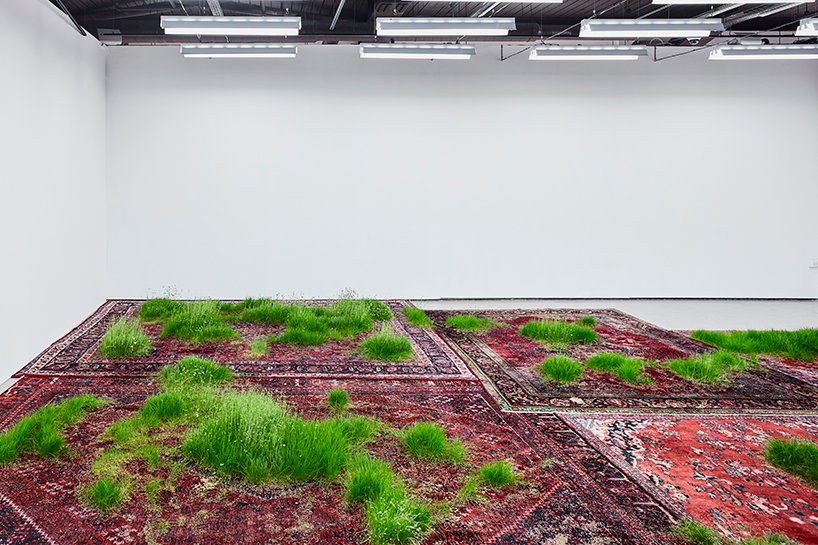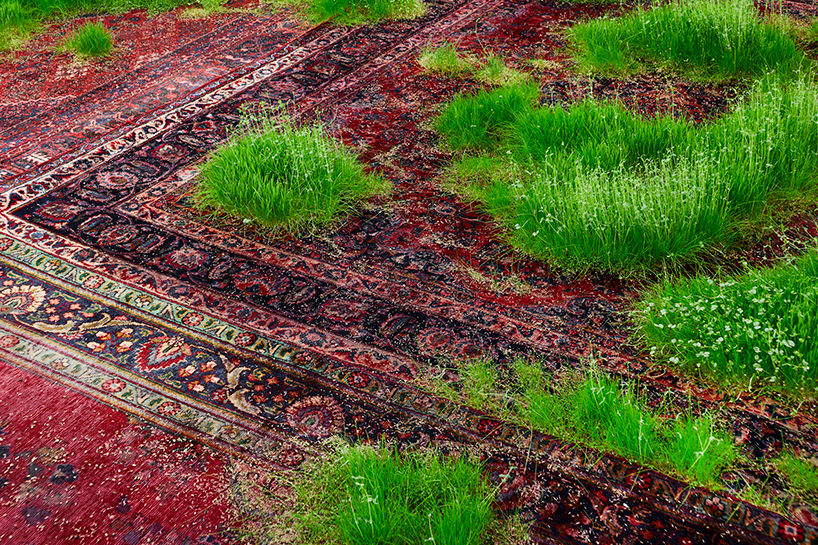 Avusturyalı sanatçı Martin Roth, İngiltere’deki Kore Kültür Merkezi’nde sergilenen isimsiz yerleştirmesiyle tüm dünyanın dikkatini çekiyor. Roth, sergi mekanının zeminini rengarenk İran halıları ile kaplamış ve halılarının üzerinde filizlenmesi için minik bitkiler ekmiş. Yerleştirmeye biçimsel açıdan baktığımızda sanatçının, kültürel bir objeyi doğal bir malzeme ile tercüme etme pratiğini görebiliyoruz.