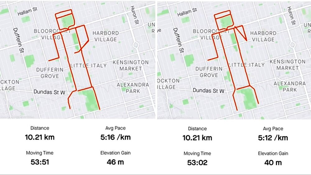 Strava kullanıcısı Duncan McCabe, uygulamadaki koşu performanslarını kısa animasyona dönüştürerek büyük beğeni topladı. Kullanıcılar tarafından bir tür “sporcu Instagram”ı olarak nitelendirilen Strava, egzersizleri takip etmek için kullanılan ve sosyal ağ özelliklerini içeren bir uygulama. GPS verilerini kullanan uygulama çoğunlukla bisiklet sürücüleri ve koşucular arasında popüler. Şu anda 100 milyon aktif kullanıcı uygulamayı ücretsiz olarak kullanıyor. Uygulamanın gücü ise topluluk destekli motivasyon sağlamasından geliyor. Antrenmanlarda ortaya çıkan rotalarla hazırlanan Strava art çizimleri ise adeta bir trende dönüşmüş durumda. Film yapımcısı ve Strava kullacısı Duncan McCabe ise kendi koşu performanslarını çöp adamlı bir animasyona dönüştürerek Strava Art akımında çıtayı biraz daha yükseltmiş. Animasyon için Toronto’daki koşuları Strava uygulamasıyla stratejik olarak planlayıp kaydetmiş. Ardından bu kayıtları flipbook tarzı animasyonlara dönüştürmüş.