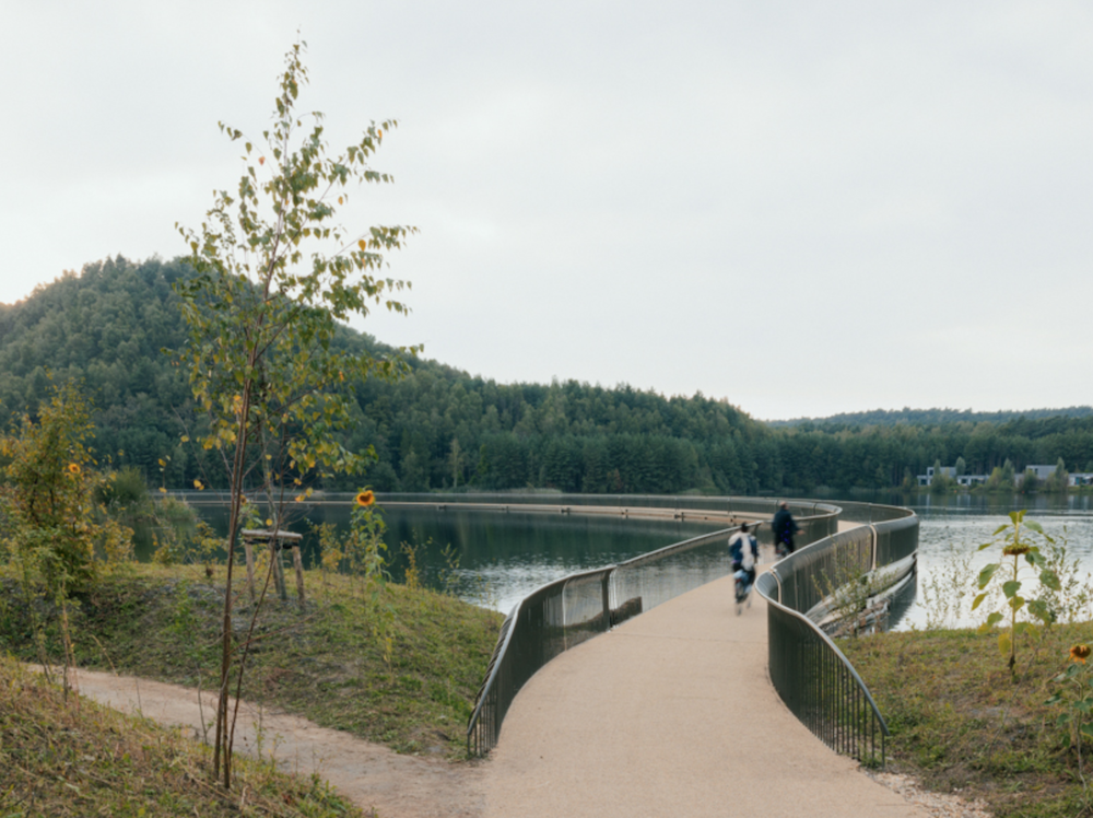 BuroLandschap, dubalı köprüyü adeta manzaraya entegre etmiş ve bu köprüyle iki maden alanını fiziksel olarak birbirine bağlamış. Doğal formlardan ve Fibonacci dizisinden (Altın Oran) ilham alan köprü, su üzerinde düz bir bağlantı yerine kavisli, organik bir şekilde uzanıyor. Bu tasarım seçimi, bisikletçilerin ve yürüyüşçülerin hızını yavaşlatıyor, onları duraklatmaya ve muhteşem manzaranın tadını çıkarmaya teşvik ederek yapıyı çevresiyle bütünleştiriyor.