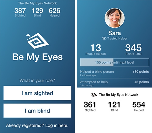 iPhone 4s ya da daha yeni telefonda çalışan “Be My Eyes” uygulaması, gönüllü kişilerin görme engellilere görüntülü konuşma ile yardım etmesini sağlıyor.
