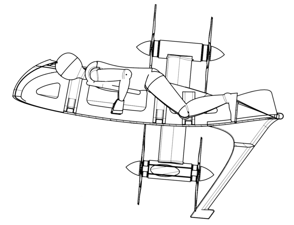 Disk dikey pozisyondayken, hafifçe öne doğru eğilerek arkadaki birleşik, katlanır kapak düzeninden giriyorsunuz. İçeride göğsünüzü ve karnınızı ön tarafa yaslıyorsunuz ve arkanızdaki kapağı kapatıyorsunuz. Böylece uçmaya hazır sayılıyorsunuz. Araç dikey olarak havalanıyor ve ardından yaklaşık 20 saniye içinde diskinin bir kanat gibi süzülmeye başlayacağı yatay bir seyir moduna geçiyor. Üst pervaneler, VTOL ve havada durma için; alttaki pervaneler ise yüksek hızlarda seyir için optimize edilmiş. Bu nedenle alt pervaneler daha yüksek eğimli kanatlara sahip.