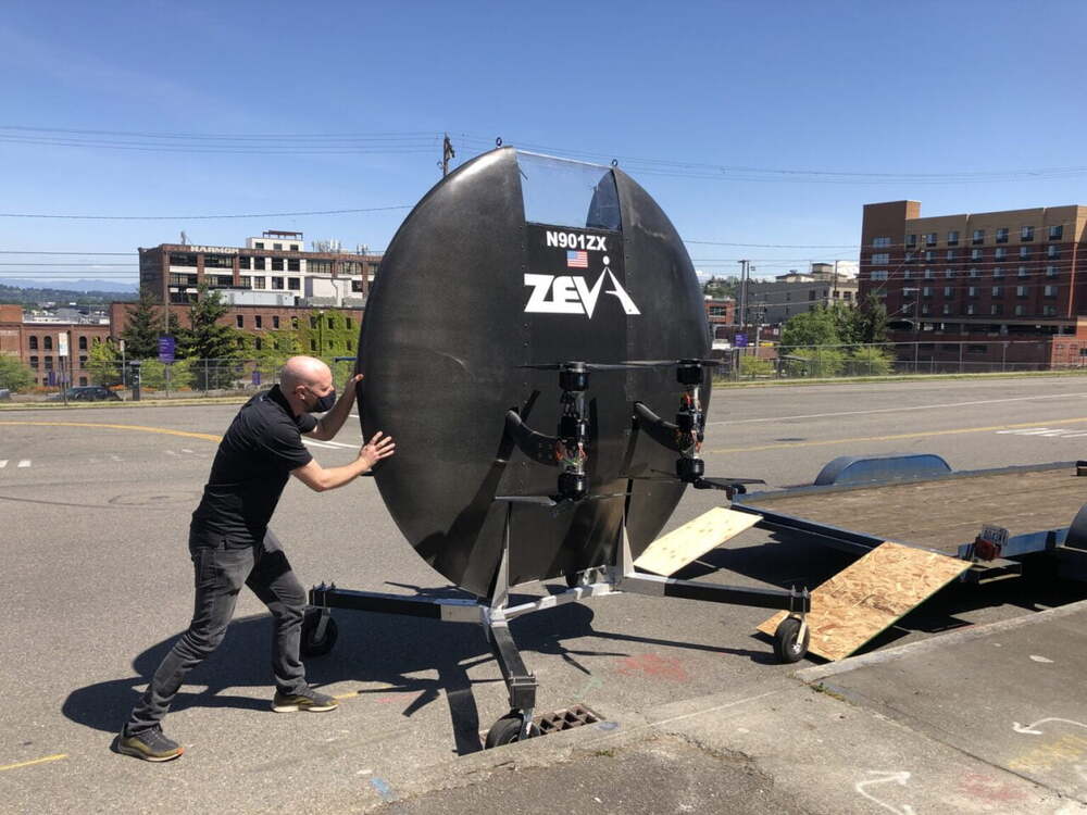 Zeva Zero temel olarak, ortasında insan boyutunda bir oyuk olan 2,4 m çapa ve brüt olarak 317 kg ağırlığa sahip büyük bir karbon fiber disk. Yan cephelerinde dışarı görmek için şeffaf penceresi bulunuyor. Ayrıca her iki cephesinde de eş eksenli olarak monte edilmiş iki elektrikli pervane yer alıyor.