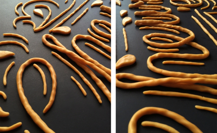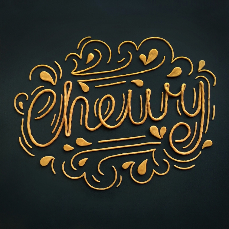 Grafik tasarımcı ve tipografik illüstratör Becca Clanson, yukarıdakiler gibi bir çok örneği gözlemleyip bir araya getirmiş. “Food Typography” yaratıcılık, algı ve el becerisinin bir araya geldiği bir çalışma karşımıza çıkıyor.