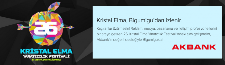Akbank işbirliğimizin en önemli projesi sanırım Kristal Elma’ydı. Türkiye’de reklam ve pazarlama endüstrileri için gerçekleştirilen en büyük konferans olan Kristal Elma, uluslarası anlamda da ziyaretçi sayısı olarak Cannes Lions’dan sonra dünyanın en büyük ikinci yaratıcılık konferansı konumuna yerleşti. Bu yıl Kristal Elma’da sadece medya sponsoru değil, BiguLab markamızla çözüm ortağı olarak da yer aldık. Kristal Elma gibi önemli bir festivalin trendlerini yazma görevini resmi olarak aldık ve festivalin hemen arkasından raporumuzu yayınladık. Kristal Elma boyunca Akbank’la birlikte gün özetlerini ve festivalin genel özetini de kısa videolar hazırlayarak paylaştık. Bu yıl ilk defa ortaya çıkardığımız başarılı video içeriklerimizde yönetmenimiz Murathan Varol’un da emeği büyüktü.