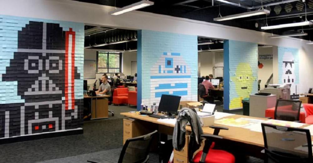Hemen yukarıda bahsettiğim post-it’lerle yapılan süper kahramanlar, Viking isimli İngiliz firmasına ilham oldu ve firma tam 3.579 adet post-it’le tüm ofis duvarlarını Star Wars karakterleriyle süsledi.
