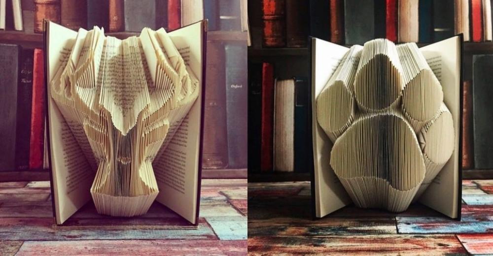 Nicola Nobo, eski kitapların sayfalarını origami yapar gibi kıvırıyor ve 3 boyutlu heykeller ortaya çıkarıyor. Nobo’nun ayı patisinden geyiğe, kafatasından, kahve fincanına kadar elde yaptığı birçok figürden oluşan kitap-heykelleri satılık olmasa da, sanatçının Book Origami isimli Etsy dükkanında desenlerin nasıl yapıldığını anlatan açıklamalarını bulmak mümkün.
