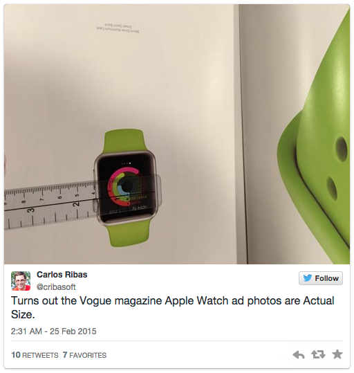 - Vogue’da çıkan Apple Watch reklamı sayesinde ilk kez saatin boyutuyla ilgili ipuçları yakalandı.