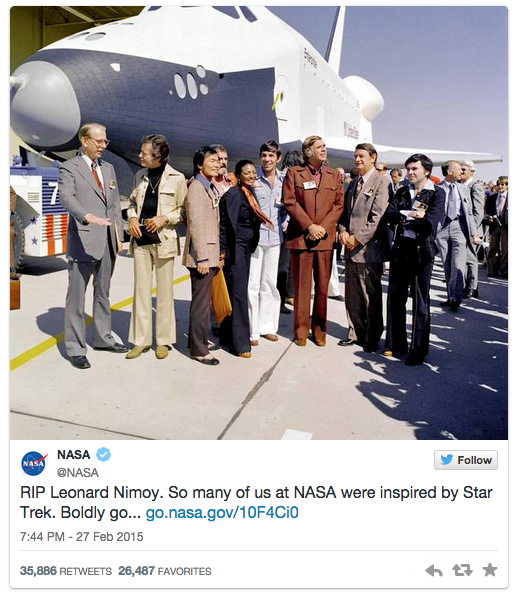 - Star Trek’teki Mr.Spock karakteriyle kültleşmiş aktör; aynı zamanda yönetmen, şair, şarkıcı ve fotoğrafçı Leonard Nimoy vefat etti. Vefatı üzerine yapılan sayısız paylaşımlar arasında Obama’nın yayınladığı bildiri, NASA’nın mesajı ve geçmişte oynadığı “Spock vs Spock” adlı Audi reklamı da yer aldı.