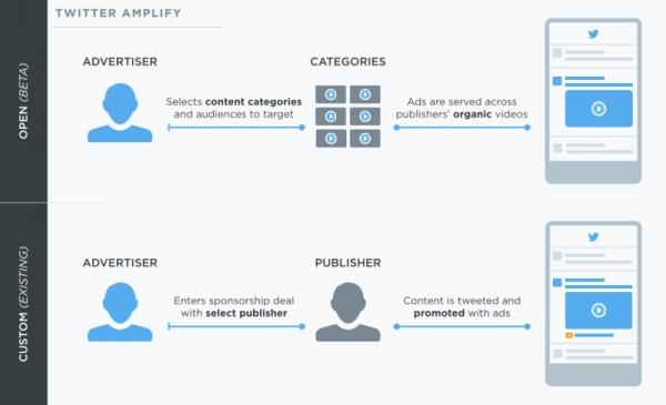 - Pazarlamacıların Twitter Amplify hizmeti üzerinden seçtikleri içerik kategorilerine ekleyecekleri video reklamları, videoların hemen öncesinde yer alacak. Sponsorluk anlaşmasına gerek kalmadan reklam vermenin önünü açan özellikle ilgili bazı öngörüleri buradan edinebilirsiniz.
