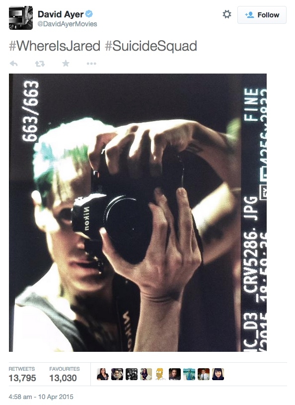 - Başrolleri arasında Will Smith’in bulunduğu DC Comics’in yeni filmi Suicide Squad vesilesiyle Jared Leto’yu da Joker rolünde izleyeceğiz. Bunu farkına varmamızı ise yönetmenin hafta içinde hesabından attığı alttaki tweete borçluyuz. Jared Leto’nun pozu ise The Killing Joke çizgi romanının kapağındaki pozun yeniden kullanımı olarak karşımıza çıkıyor.