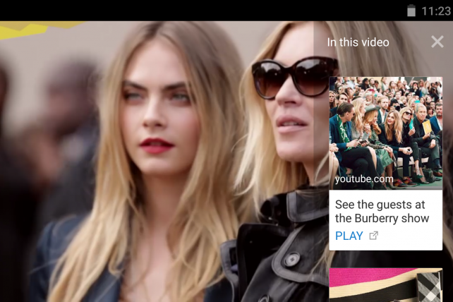 - YouTube’la ilgili kesinliği halihazırda belli olan gelişmeyse video reklamlarına TrueView adı altında etkileşimli kartlar eklemesi üzerineydi. Reklamverenlere yeni bir dikkat çekme olanağı verdiği bu özellikle videoya markayla ve/veya ürünle ilgili bilgiler (video, çalma listesi, websitesi, görsel gibi) dahil edilebiliyor. TrueView kartları tablet, akıllı telefon dışında Apple TV ve Chromecast gibi internete bağlı televizyonlarda da etkin olacak, böylece önceden kullanılmış “annotations” seçeneğine göre önemli bir yol katedilmiş olacak.