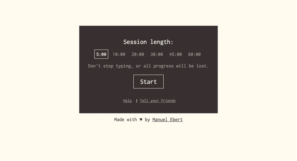 Şirketlerin yapay zeka stratejilerini yöneten summer.ai’in kurucusu Manuel Ebert’in tasarladığı yeni internet sitesi, yazarları “yazamama” derdinden kurtarmayı hedefliyor. “The Most Dangerous Writing App” adını taşıyan uygulama, oturum süresini belirlemenizle başlıyor. Seçtiğiniz süre boyunca yazmaya devam etmek zorundasınız, yoksa yazdığınız her şey siliniyor.