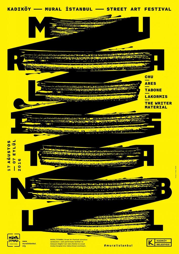 Kadıköy sokalarındaki boş ve renksiz duvarları alıp yerli ve yabancı sokak sanatçılarına teslim eden Mural İstanbul festivali bu yıl organizasyonda yer alacak sanatçıları ve etkinlik takvimini açıkladı. 17 Ağustos’ta başlayıp 7 Eylül’de bitecek olan Mural İstanbul 2016‘da Chu, Ares, Tabone, Lakormis ve The Writer Material yer alacak. Etkinliği nefis afişi ise Erman Yılmaz tarafından hazırlanmış.