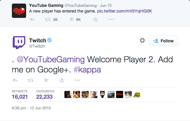 - Twitch.tv ise bu gelişmeyi oyuncu jargonuyla sosyal medya trendlerini birleştirerek iğneledi.