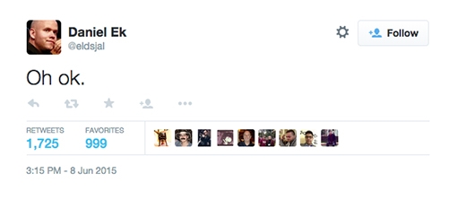 - Servisin duyurulması üzerine Spotify CEO’su Daniel Ek Apple Music’i önce “oh ok” tweetiyle yorumladı. Ardından da tweetini sildi.