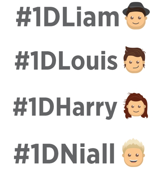 - One Direction Twitter’la anlaşarak grubun hayranlarının en çok hangi ülkeden olduğunu ortaya çıkartacak bir kampanyaya imza attı. En sıkı hayranların ödülleneceği kampanya grup üyelerinin emojilerinin “bayraklanabildiği” etiketlerden oluşuyor.
