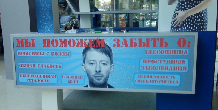 - İran’da yayınlanan evlilik ve seks hakkında yayınlanan bir kitabın kapağında sebebi bilinmese de Thom Yorke’un fotoğrafı basıldı. Rusya’da yer alan açıkhava reklamında ise “Uykusuzluk, yorgunluk, cilt sorunları soğuk algınlığı, dikkat dağınıklığı, baş ağrısı gibi sorunları unutmanıza yardımcı olur.” metniyle fotoğrafı yer aldı.
