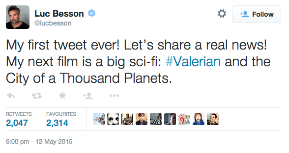 - Son bilimkurgu filmi “Lucy” ile farklı eleştiriler alan yönetmen Luc Besson, Fransız çizgi roman serisi Valerian uyarlamasıyla geri dönüyor. 2017’de çıkması planlanan “Valerian and the City of a Thousand Planets” adlı filmin başrolleri arasında Cara Delevingne ve Dane DeHaan yer alacak.