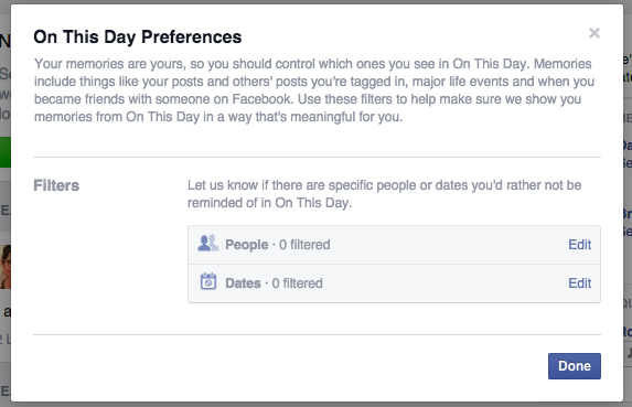 - Geçmişte yaptığınız paylaşımları On This Day Preferences özelliğiyle yıllar sonra tekrardan karşınıza çıkartan Facebook, artık belli tarih veya kişi detayları üzerinde değişiklik yapmanıza imkan tanıyor.