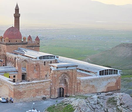 “İshakpaşa Sarayı’nın cam çatıyla kaplanmış modern görünümü.”