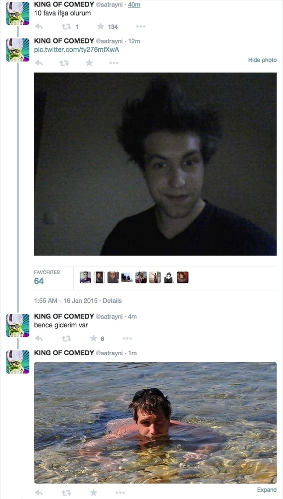 - Twitter’ın komedi kralı, montaj ve eğlenceli içerik üretici @satrayni “10 fav’a ifşa olurum.” diyerek fotoğrafını paylaştı.