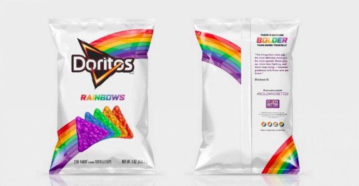 - Doritos, LGBT topluluğunu desteklemek amacıyla It Gets Better Project ile iş birliği içinde gökkuşağı renklerinde cipsler hazırladı. LGBT bayrağından yola çıkılarak hazırlanan cipsler sınırlı sayıda üretildi ve beklenenin üzerinde ilgi görerek tüm stoklar tükendi. Doritos ise bu ilgi üzerine LGBT dostu cipslerden yeniden üretmeye karar verdi.