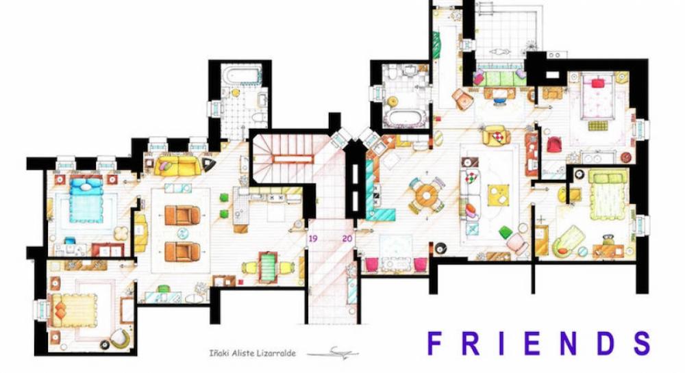 İç mimar Inaki Aliste Lizarralde, Firends, Seinfeld, Fraiser, Gilmore Girls gibi popüler dizilerin geçtiği evlerin kat planlarını renkli çizimlerle baştan yarattı. Tamamı elle çizilen kat planı koleksiyonları Etsy üzerinden satışa sunuldu.