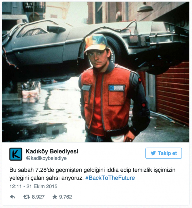 - Kadıköy Belediyesi ise ikonik afişlerden birine minik bir görsel ekleyen hem eğlenceli hem de orijinal bir içerikle karşıladı Marty McFly’ı.
