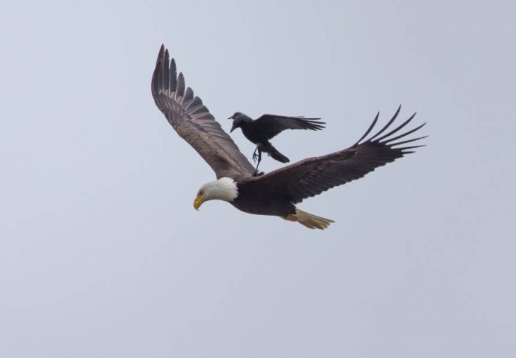 - California’lı doğa fotoğrafçısı Phoo Chan, bir karganın hava akımı içinde süzülen kartalın üzerine konduğu konforlu seyahatini fotoğraflayarak oldukça nadir anlardan birini yakalamış.