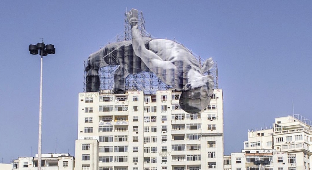 Fransız sanatçı JR, iki gün sonra başlayacak olan Rio 2016 Yaz Olimpiyatlarını kutlamak için şehrin iki farklı noktasına normal insan boyutlarının da üstünde dev yerleştirmeler yaptı. JR’ın hali hazırda devam eden Inside Out projesiyle dirsek teması olan bu iki yerleştirme kullanılan materyal ve ölçek olarak da kendine özel bir alana sahip oldu.