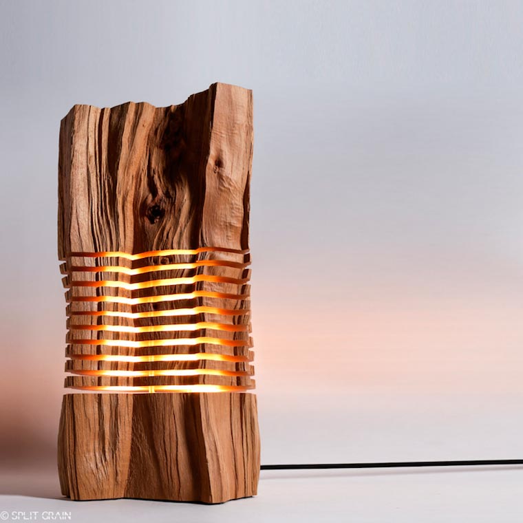 Split Grain tasarım stüdyosunun sahibi Paul Foeckler, yakacak olarak kullanmak için kesilen tek parça ağaç gövdelerinden oluşan ve bu büyük parçalardan şeritler çıkarılarak son haline alan dekoratif lambalar tasarlıyor. Kesip çıkarılan parçaların yarattığı kesiklerden yayılan ışık, lambanın bulunduğu odaya farklı bir atmosfer kazandırıyor.