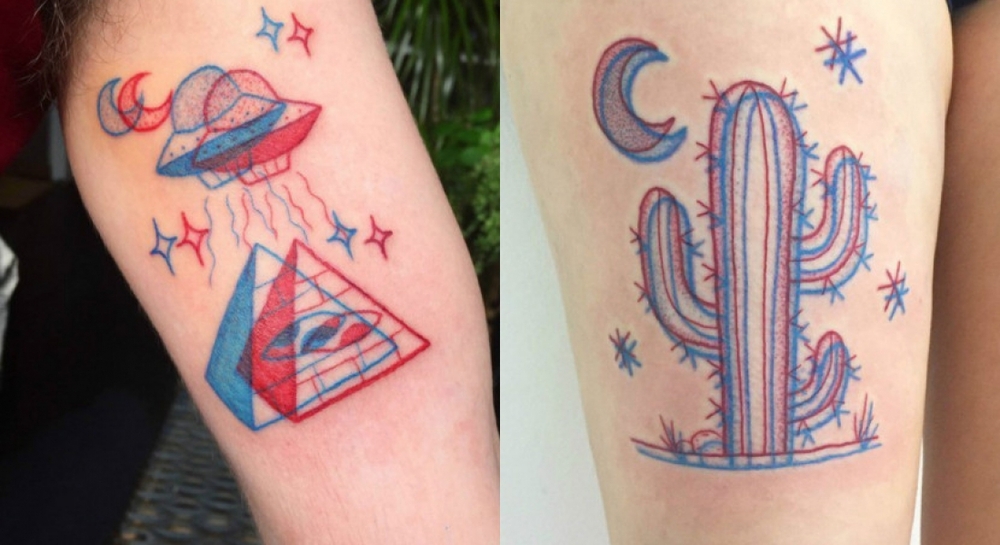 3B gözlükle bakınca bütünlük kazanan dövmeler