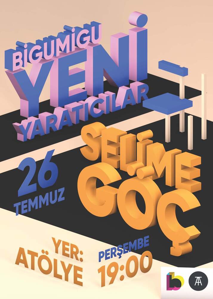 Bigumigu olarak içimizdeki keşfetme ve paylaşma arzumuzu Ocak ayında fiziksel bir alana taşıdık. Yeni Yaratıcılar ile her ay özgün, yaratıcı ve ufuk açıcı çalışmalar yapan sanatçıları ağırlıyoruz. Geçmiş buluşmalarımızda Tarık Tolunay, Erdal İnci, Deniz Cem Önduygu, Emrah Ablak konuğumuz oldu. Haziran ayında da sosyal tasarımcı, reklamcı, yönetmen ve YouTuber kimlikleriyle çok disiplinli bir yaratıcı olan Tunç Topçuoğlu ile beraberdik . Temmuz’da ise dijital bozulma ve deformasyonun küresel çatısı glitch üzerine çalışan ve eserler üreten Selime Göç’ü ağırlayacağız.