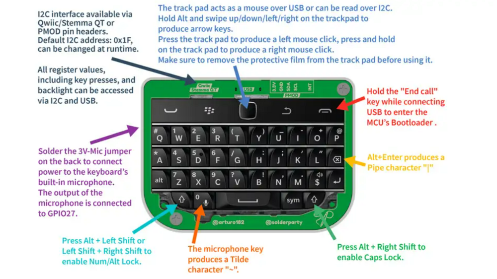 Taşınabilir kompakt BB Q20 klavyesinin, ikincil bir QWERTY klavye olarak hizmet vermek üzere tasarlandığı belirtiliyor. Windows, Mac, Linux işletim sistemleri ile Android ve IOS destekli akıllı telefonlarla uyumlu olan klavye, şeffaf plastik bir kasaya ve arka aydınlatmasına sahip. BlackBerry Q20 model cep telefonuna ait klavyeler üzerinde denemeler yapan tasarım ekibi, tuş hareketlerini Raspberry Pi RP2040 adlı geliştirme kartı üzerinde eşleştirerek bu mini klavyeye aktardı.