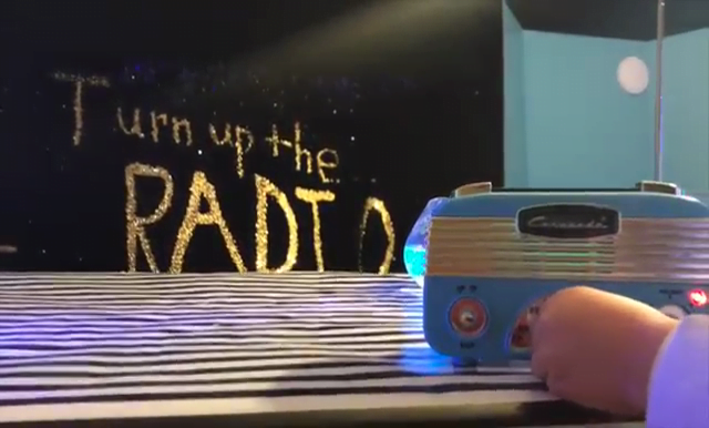 İlk videolarını OK Go’nun The One Moment parçası için hazırlayan OK Go Kids, yeni videoları için Turn Up The Radio’yu seçmiş. Yayınladıkları açıklama videosunda da bu parçayı seçmelerinde “Turn off the lights” (Işıkları kapat) sözünün etkili olduğunu belirtiyorlar. Çünkü bu dizeyle birlikte videolarının teması da ışık, renk ve elektromanyetik spektruma olarak ortaya çıkıyor.