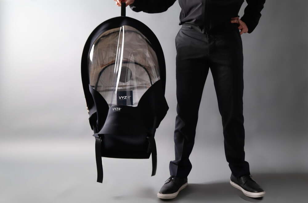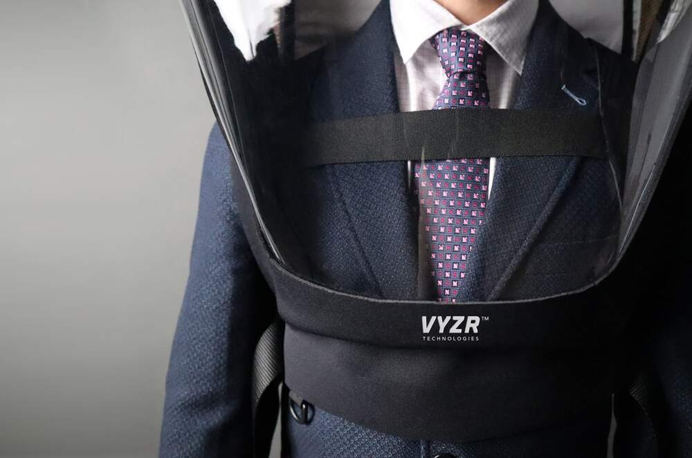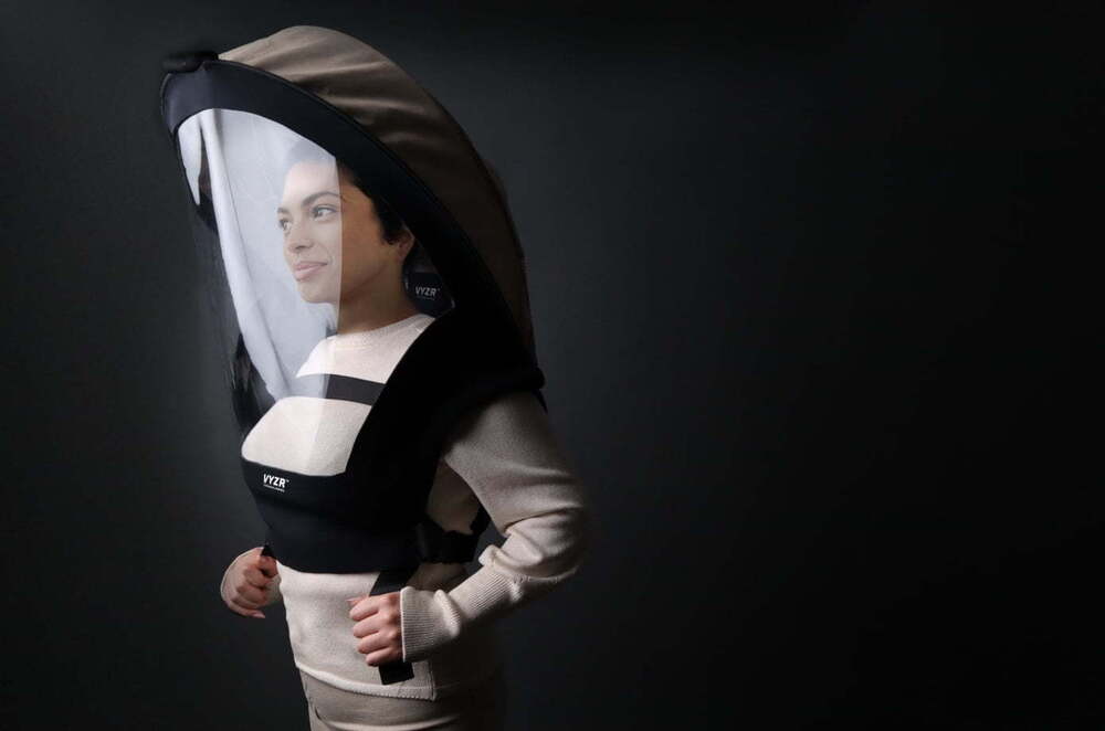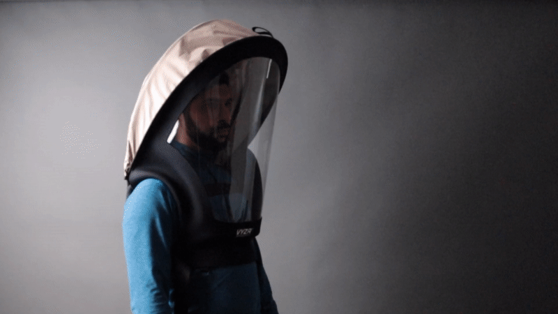 Salgını geride bırakmamız uzun zaman alacak gibi görünüyor. Ayrıca yeniden geri gelebileceği veya iklim krizi nedeniyle başka virüs salgınlarının yaşanabileceği de yakın geleceğe dair senaryolardan. BioVYZR, artık hiçbir şeyin eskisi gibi olamayacağı bu yeni dünyada rahat nefes alarak ve virüs kapma kaygısını en aza indirerek dolaşabilmeyi vadediyor. Tasarım, kullanıcının göğüs hizasına kadar inen ve kullanıcıyı tamamen çevresinden izole eden bir kapsül. Bu kapsülle yalnızca ağız ve burun değil virüsün temas edebileceği riskli alanların tamamı kapatılmış oluyor. Çevrenizdekiler sosyal mesafe kuralını çiğneyip çok yakınınıza gelseler bile endişe etmenize gerek kalmıyor. Hatta sosyal mesafe kuralına ihtiyaç kalmıyor. Unutup da elinizi yüzünüze sürme ihtimalinizi de sıfırlamış oluyor. Ayrıca bu kalkanı takan kişilerin de başkalarına hastalık bulaştırma ihtimali de ortadan kalkıyor. Gerçekten de sıradan maskelere ve siperliklere göre çok daha etkili olacağı konusunda inandırıcı.