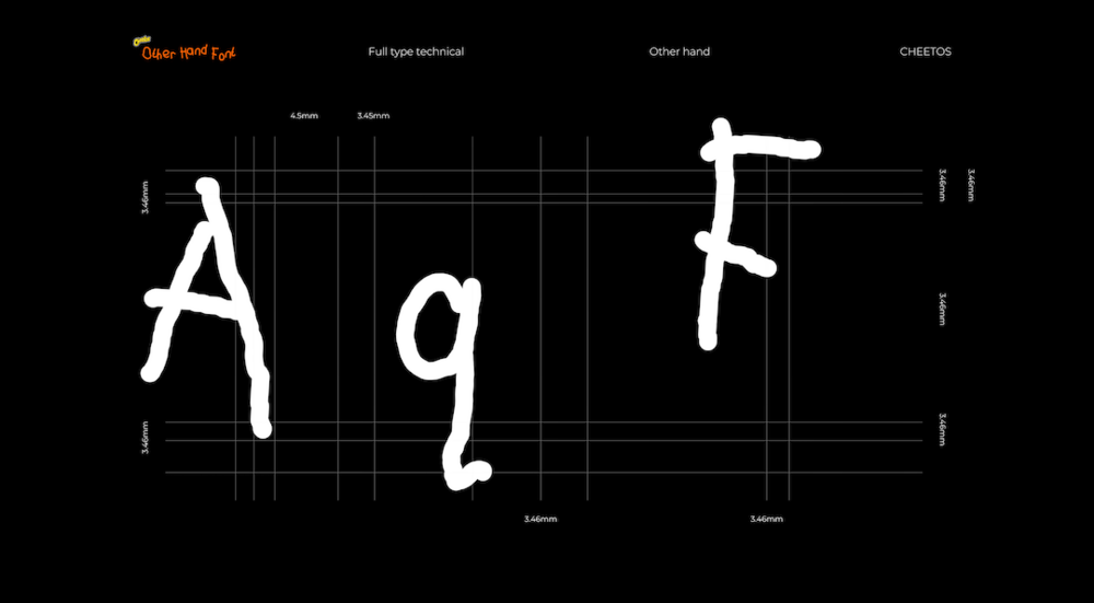 Cheetos, 23 Ocak Dünya El Yazısı Günü’nü, cips yedikten sonra oluşan yapışkan, parlak turuncu parmak uçlarından ilham alarak tasarlanan “The Other Hand Font” ile kutladı. Goodby Silverstein & Partners ekibi tarafından oluşturulan yazı tipi, tamamen baskın olmayan eller kullanılarak tasarlanmış.