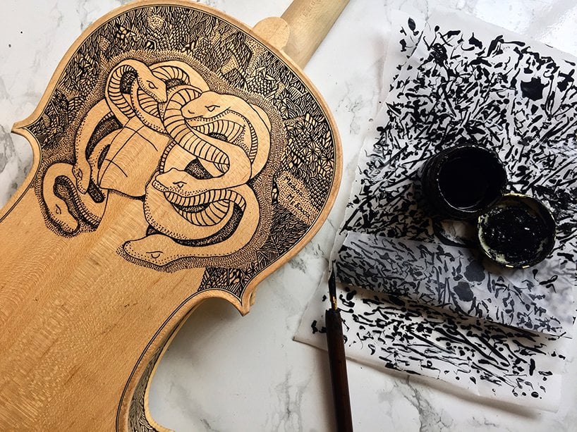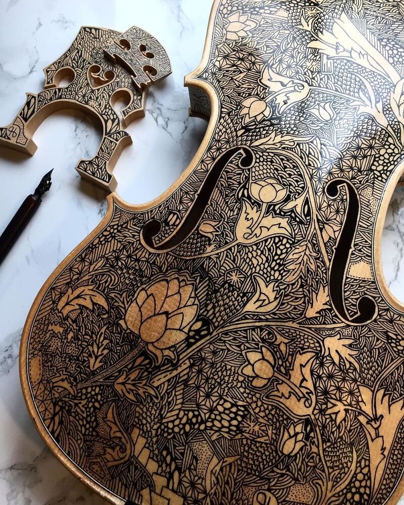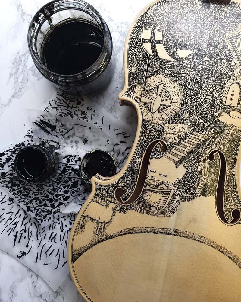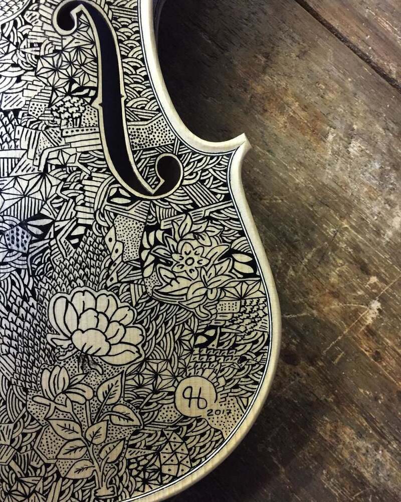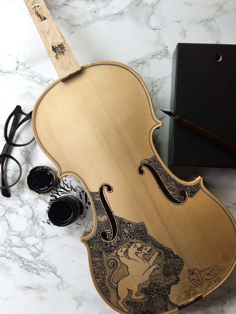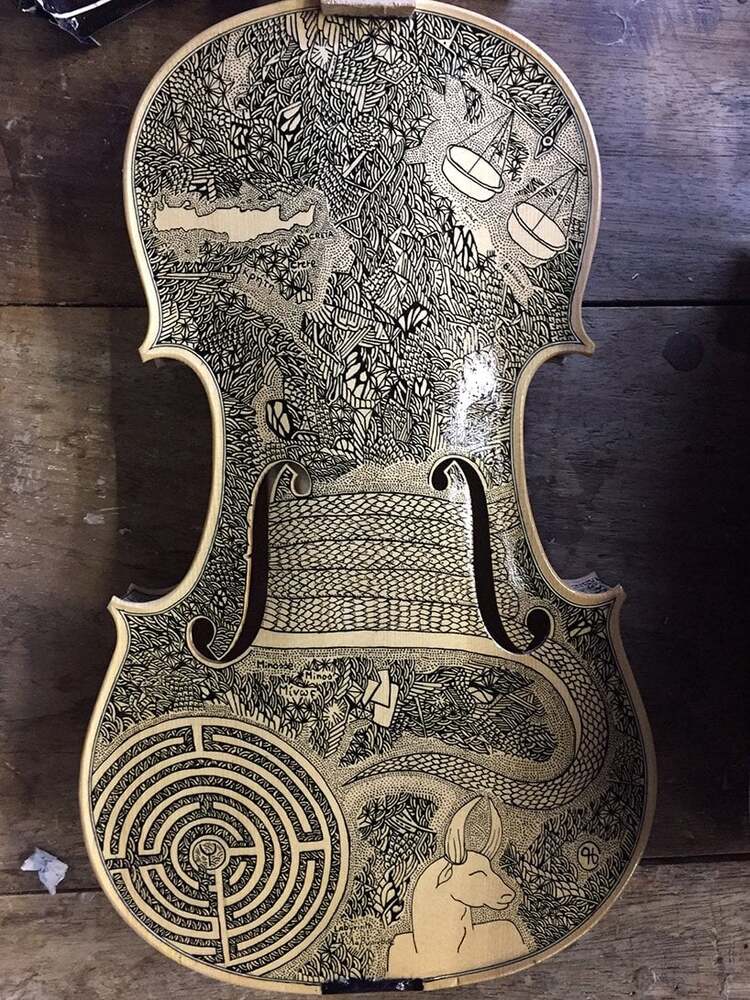Londra’da yaşayan İtalyan sanatçı Leonardo Frigo, keman ve viyolonsel gibi yaylı enstrümanlar üzerine yaptığı çizimlerle internette ses getiriyor. Çizimlerin konusu biyografiler ve çeşitli hikayeler.