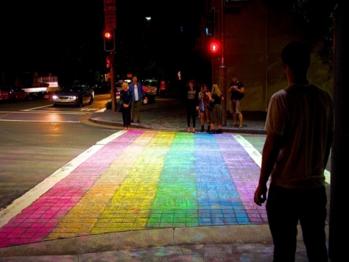 Bu yıl Nisan ayında Sidney’de gökkuşağı renklerine boyanan yaya geçidi (yapımı için 75 bin euro harcanmıştı) , 15 bin kişinin imza ve dilekçesine rağmen güvenlik tehlikesi nedeniyle kaldırıldı.