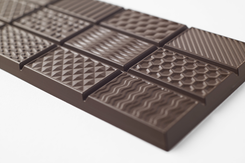 Japonyalı tasarım stüdyosu Nendo, “Chocolatexturebar” isimli projesini ocak ayı içersinde yayınladı. 12 parçalı büyük çikolata barında her parça farklı bir geometrik desene (zikzak, çizgili, baklava…) sahip. Ve hatta bazı parçalar 3 boyutlu olarak yer alıyor. Nendo çikolata barları sütlü, bitter, beyaz, çilekli ve yeşil çaylı olmak üzere toplamda 5 farklı tat çeşitine sahip.