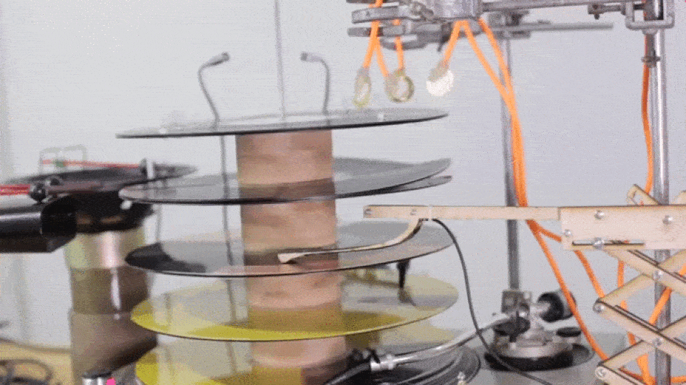 Müzisyen ve sanatçı Graham Dunning, bu alanda dikkat çekici ve ilham veren bir işe imza atıyor. Mekanik Tekno ismini verdiği çalışmasında tek bir pikap üzerine belirli boşluklarla birden fazla plak yerleştiriyor ve tek bir devir hızı üzerinde birden fazla araçla müzik üretiyor. Tekno müzik türünün temel kurallarını tamamen analog araçlarla yerine getiriyor. Üst katlara çıktıkça farklı bas tonları, yeni ritmler ve döngüler kazanan Mekanik Tekno, aynı devir üzerinde kısır döngü yaratıyor ve müziğin temel kurallarıyla oluşmasını sağlıyor.