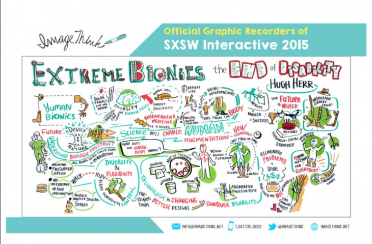 Dr. Hugh Herr’ün konuşmasının oturum boyunca çizilerek yapılan illüstrasyon hali.