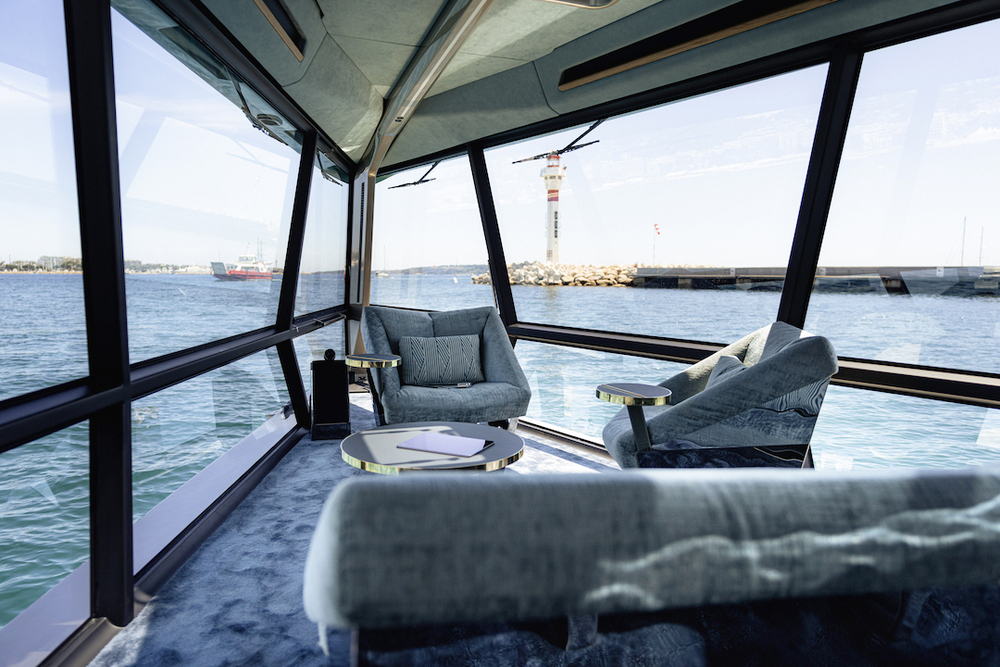360° dönebilen koltuklara ve oturma düzenine özel bir dikkat gösterilmiş. Yolcuların masa tabanlı bir bilgi-eğlence sistemi ile eğlenirken arka planda da manzarayı hissedebilmesi sağlanmış.