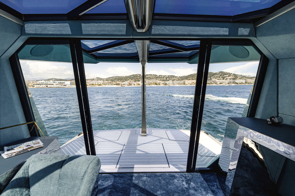 İlk bakışta, düz bir gövde ve temel ve prizma benzeri dış hatları dikkat çekiyor. Cam yan cepheleri sayesinde yolcuların deniz manzarasının keyfini çıkarabilecekleri geniş bir salon sunuyor. Hatta gövdede kullanılan metal levha parçaların tanecikli yüzeyleri, güneş ışığını teknenin zeminine yansıtarak kaleydoskop etkisi yaratıyor.
